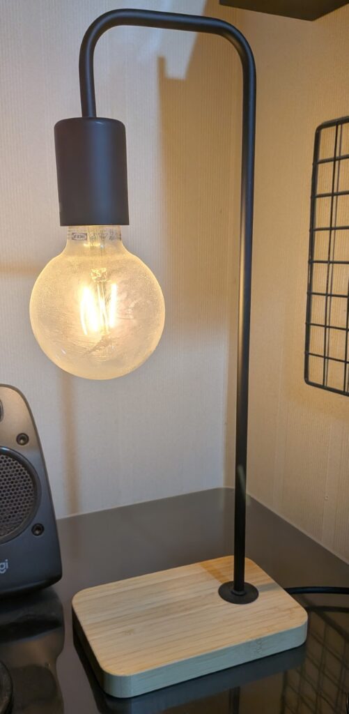 夜は明るすぎる照明より暖色系のライトを使うと入眠がしやすくなるので、夜はこのライトをつけています。